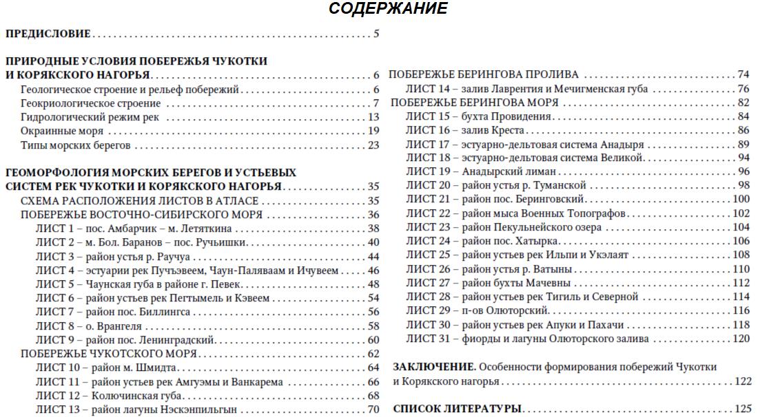 В атласе размещен также материал по строению рельефа берегов и устьевых систем побережья Берингова моря в пределах бывшего Корякского округа от бух- ты Дежнева до полуострова Говена.