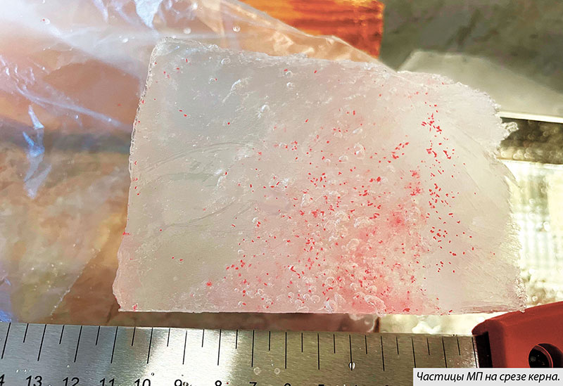 Чтобы понять движущие силы, стоящие за формированием такой специфической картины, в лаборатории были выполнены серии экспериментов по образованию льда из пресной и соленой воды, причем на дне используемых резервуаров изначально были распределены частицы разных размеров из тяжелых пластиков. И оказалось, что после замерзания воды во льду были захвачены около 50-60% таких частиц. Они реально всплывали!
