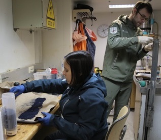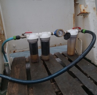 На станции 4695 в районе острова Колгуев был выполнен отбор проб с глубины 5 метров из поверхностного слоя Баренцева моря с прокачкой морской воды через сорбционную установку на базе аналитического сорбента «Анфеж». После завершения работы сорбционной установки был проведен комплекс операций по подготовке образцов к измерениям и последующему гамма-спектрометрическому анализу на содержание 137Cs, которые будут проводиться в условиях стационарной лаборатории Курчатовского института. Предварительный анализ проб показал на отсутствие в водной толще концентрации 137Cs превышающей фоновые значения.