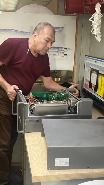 - С помощью магнитометра SeaPOS2 осуществлена гидромагнитная съемка полигонов Кинг и Атлантис, по результатам которых построены соответствующие карты аномального магнитного поля. Анализ этих карт позволит идентифицировать линейные магнитные аномалии, определить возраст океанического дна, создать геолого-геофизические модели источников магнитных аномалий.